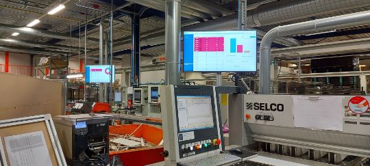 Atribuição de operações a máquinas individuais ou grupos. Status sempre atualizado das ordens, peças e operações. Relatórios configuráveis sobre performance, gargalos e paradas.